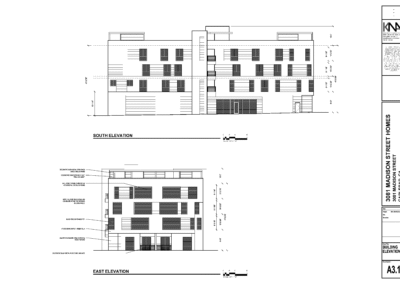 - Construction of a new four story, approximately 35,289 sf, 47′-3 7/8″ height, 12-unit residential condominium building with a common ground floor parking garage containing 20 parking lift spaces, one ADA space and 3 standard spaces (2 spaces per unit).